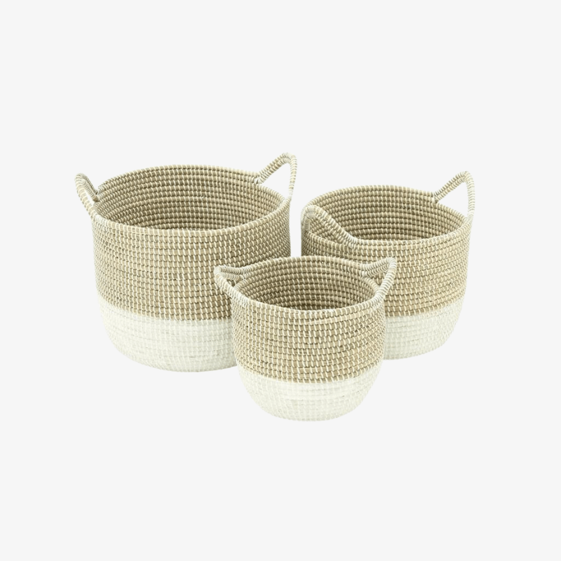 • ‎Estas cestas están hechas de cordones de algas marinas tejidos y fuertemente unidos.