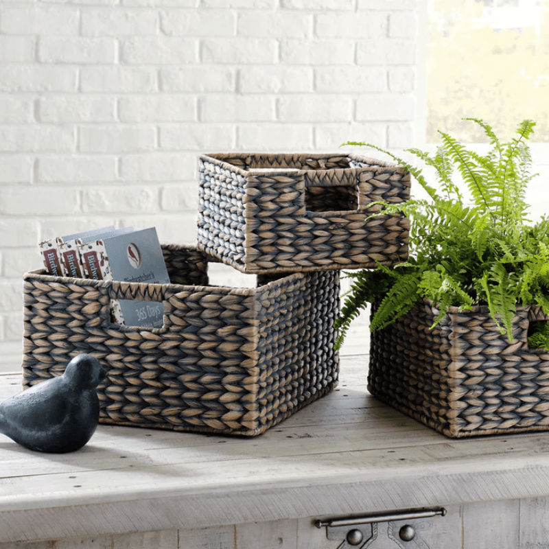 Cesta pequeña: 10″ ancho x 10″ profundidad x 6″ alto.