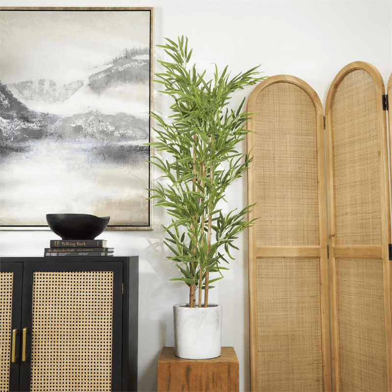 La elegante planta de bambú sintético presenta un diseño realista que aporta un toque de vegetación naturalista a su interior sin la molestia adicional del mantenimiento.