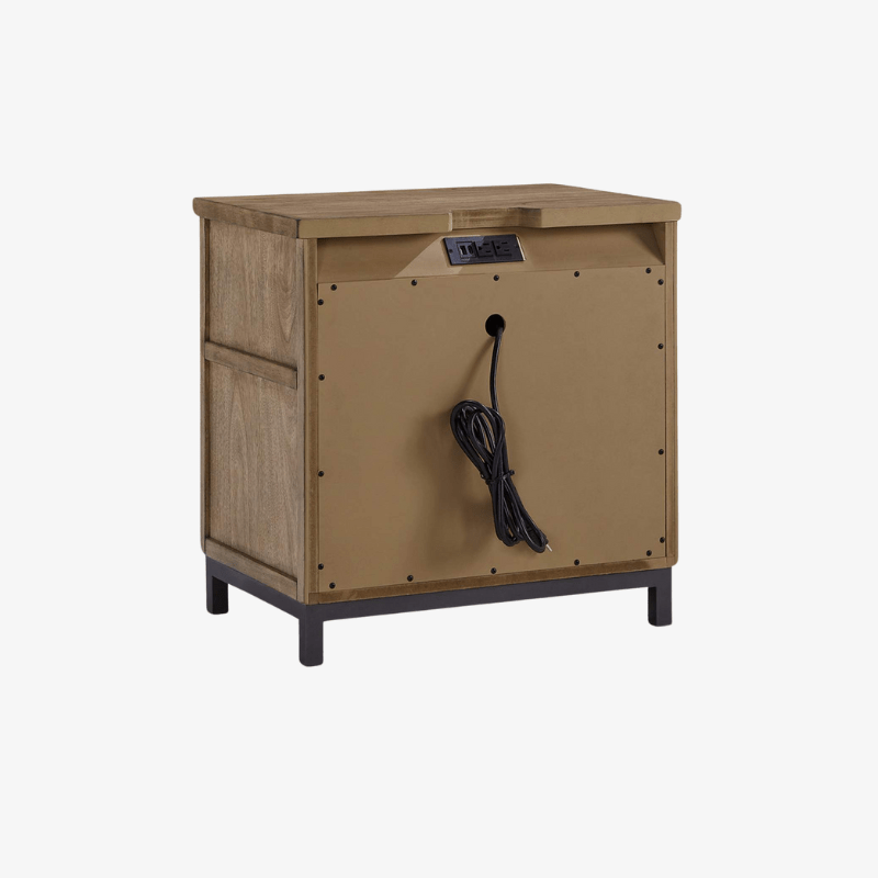 - Elegante en su simplicidad, la mesita de noche Tomtyn adopta un enfoque relajado para el refinamiento. Su diseño de materiales mezclados aporta una sensación urbana-chic de moda a sus rutinas a la hora de dormir, mientras que las características funcionales mantienen su dormitorio libre de desorden.