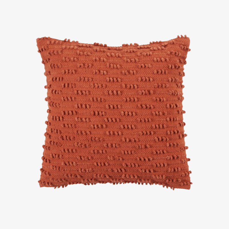 - Simple, pero elegante, este cojín texturizado aporta calidez y dimensión a cualquier espacio