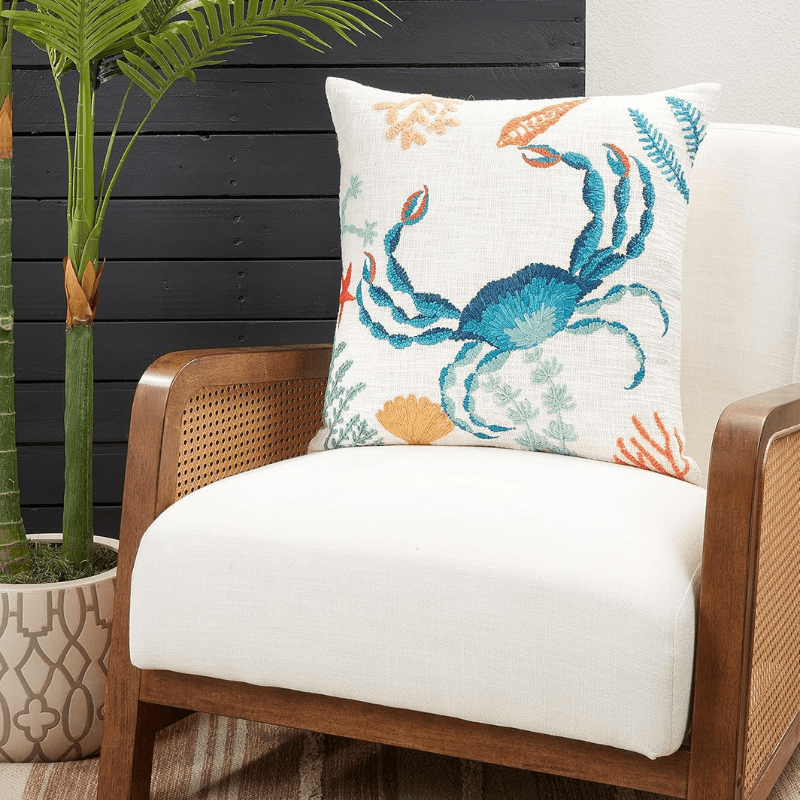 Este colorido y elegante cojín de diseño cangrejo aporta textura y dimensión a la decoración de tu hogar, alegrando al instante cualquier rincón de cualquier habitación. Colócalo sobre un viejo sofá para refrescar su aspecto o sobre tu sillón favorito para darle un toque de color. Fabricado con algodón de calidad, su suavidad crea el rincón acogedor perfecto.
