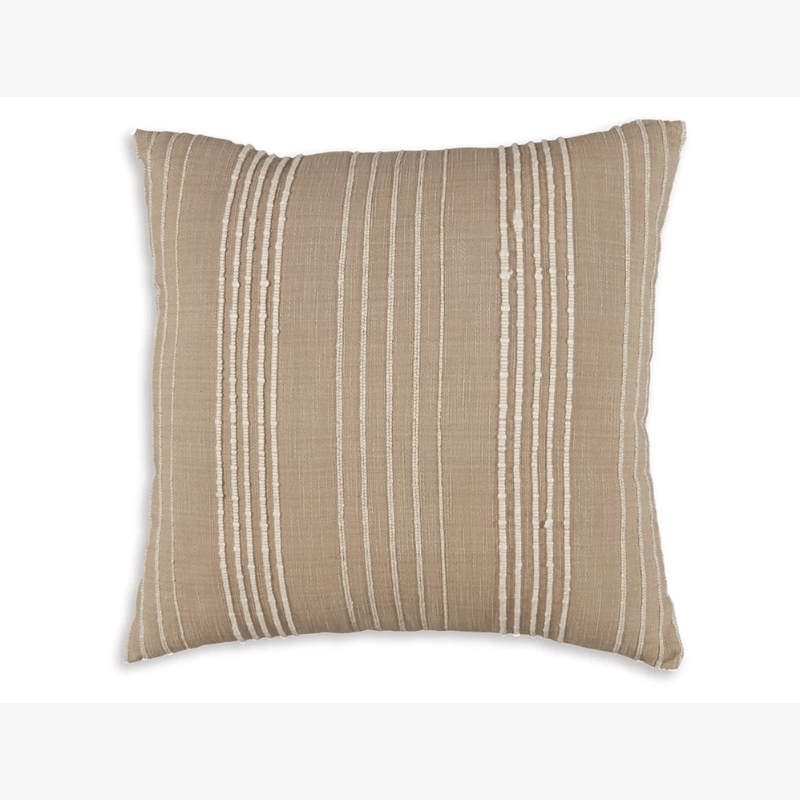 El cojí Budrey con sus sutiles rayas en blanco y tostado le dan un aspecto desenfadado que te encantará.