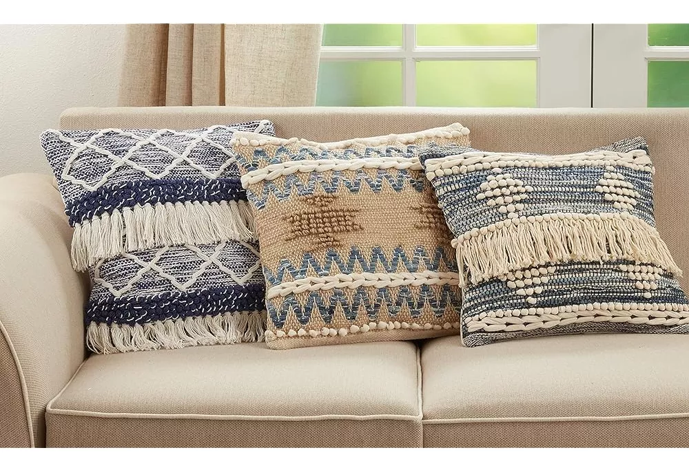Agregue un aspecto rústico a su hogar con el Cojín Chindi de textura múltiple. Cuenta con un diseño original que llama la atención al instante y refresca cualquier rincón de cualquier estancia. Es una excelente manera de refrescar la estética de su sofá o sillones, pero funciona igual de bien en una cama grande.