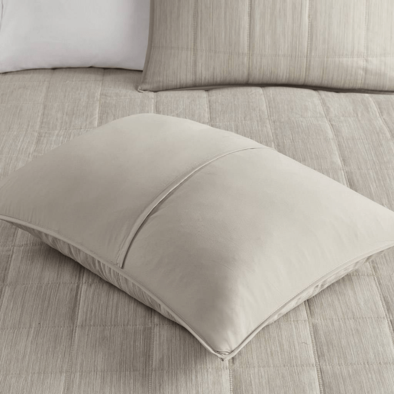 Añada la colcha Guthrie a su cama para aportar una capa extra de calidez y confort a su dormitorio. Con un elegante tejido natural a rayas para un aspecto de chambray, este edredón de gran tamaño se invierte a una suave microfibra que añade suavidad. Las fundas a juego completan el look desenfadado y el relleno de plumón proporciona calidez y confort adicionales. Perfecto por sí mismo o en capas con otra ropa de cama como un edredón o edredón, esta colcha ofrece una adición elegante a la decoración de su dormitorio.