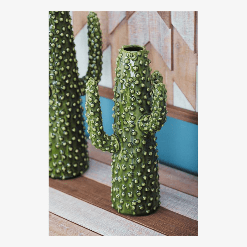 Jarrón de cerámica de cactus salvaje con una superficie texturizada.