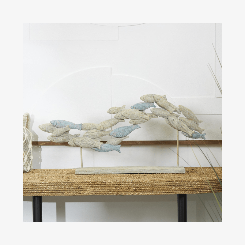 - La forma de la escultura captura la energía dinámica de un pez nadando mientras que ofrece interés visual a través de su textura ombre