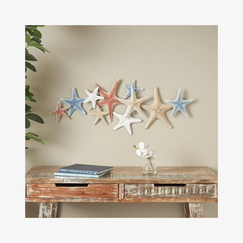 • La colorida decoración de pared de metal destaca las estrellas de mar en capas de varias formas y tamaños para añadir interés visual y dimensión a cualquier pared