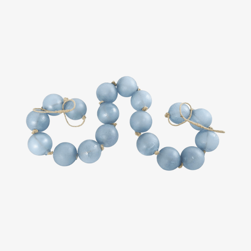 • La elegante guirnalda larga acentúa las esferas de vidrio grandes y redondas con una textura sutil y la cuerda anudada con lazos decorativos en los extremos.