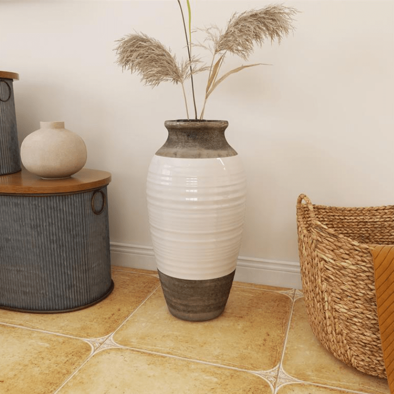 - Este jarrón de cerámica tiene forma y está moldeado con materiales de gres para formar el diseño de estilo campestre.