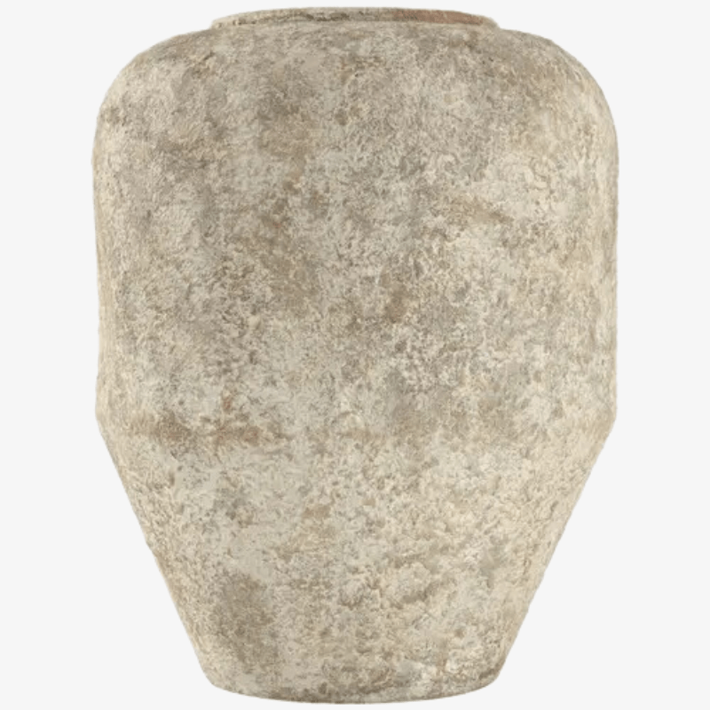 Diseñado con una belleza robusta y un encanto terroso, donde la simplicidad natural, la calidez y los materiales orgánicos crean una atmósfera saludable. Hecho a mano completamente con material de hierro de alta calidad, este jarrón garantiza durabilidad y una apariencia de inspiración vintage que agrega carácter a cualquier decoración rústica. El jarrón de estilo antiguo viene en un color y acabado de metal beige rústico, que irradia una apariencia encantadora y desgastada. El jarrón presenta detalles desgastados únicos, mostrando un estilo antiguo que aporta un toque de nostalgia a su espacio vital.