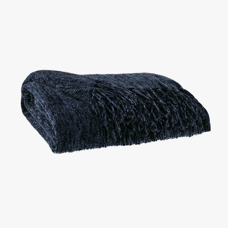 Tejido de algodón y chenilla, esta manta informal y chic te envolverá en calidez y frescor.