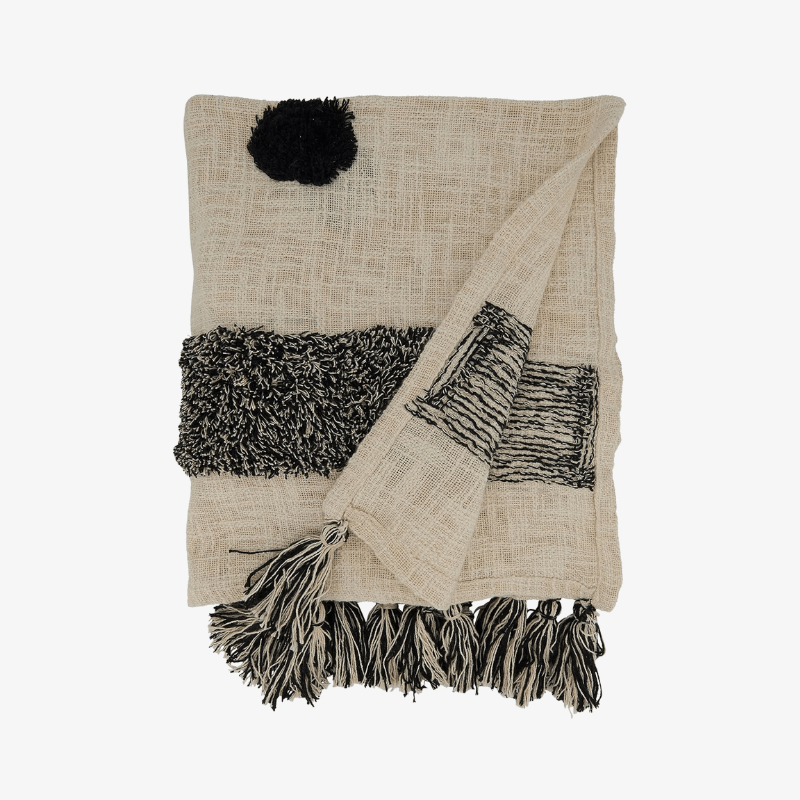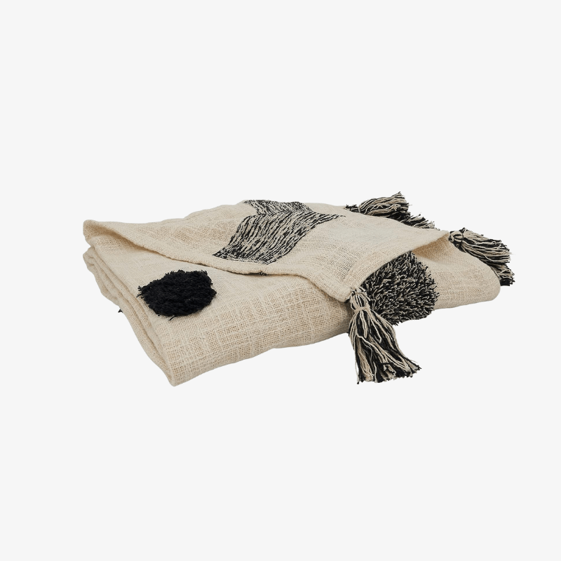 Verdaderamente única, esta manta de lunares copetudos es una adición elegante a la decoración de tu sala de estar, la pieza perfecta para elevar el aspecto de tu viejo sofá. Cuenta con puntos copetudos repartidos alrededor de su superficie, que agregan textura y dimensión al espacio. Las borlas en cada borde aportan un toque caprichoso.