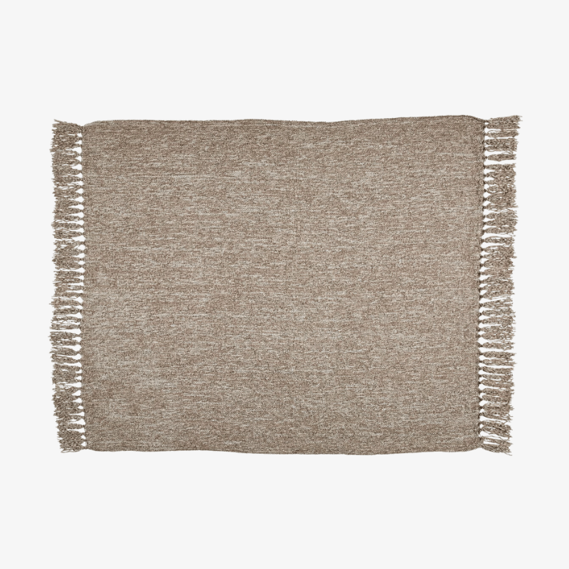 - La textura tejida y los flecos anudados le dan un aspecto casero, relajado y acogedor.