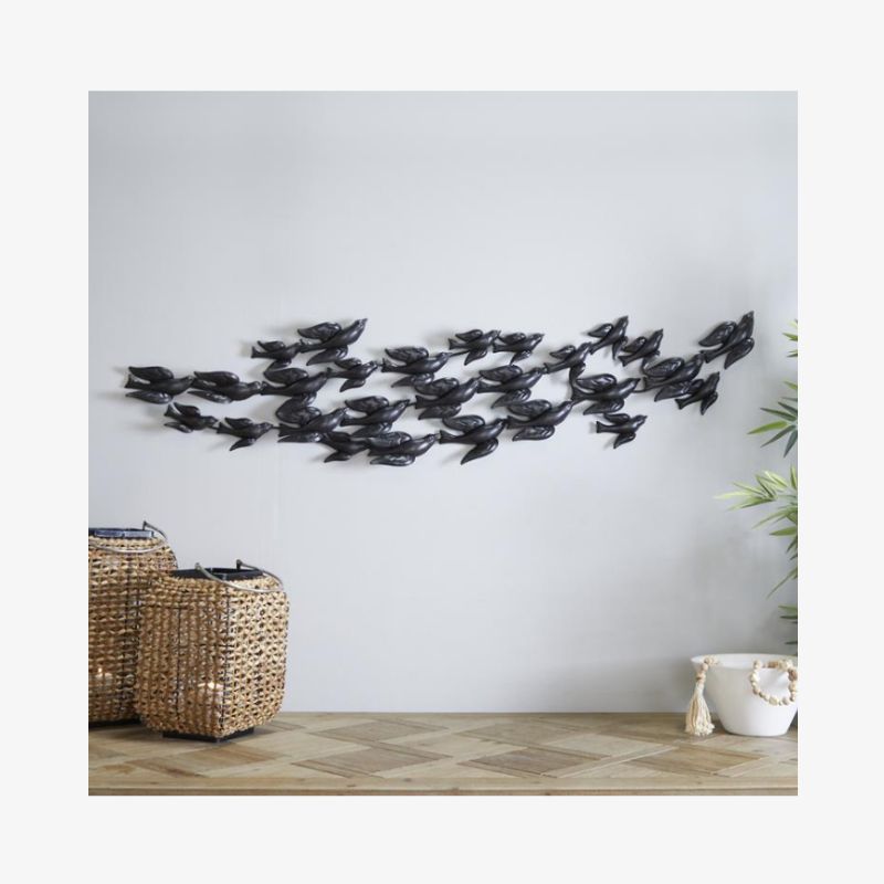Esta decoración de pájaro costero viene en un acabado de hierro negro