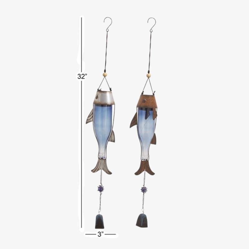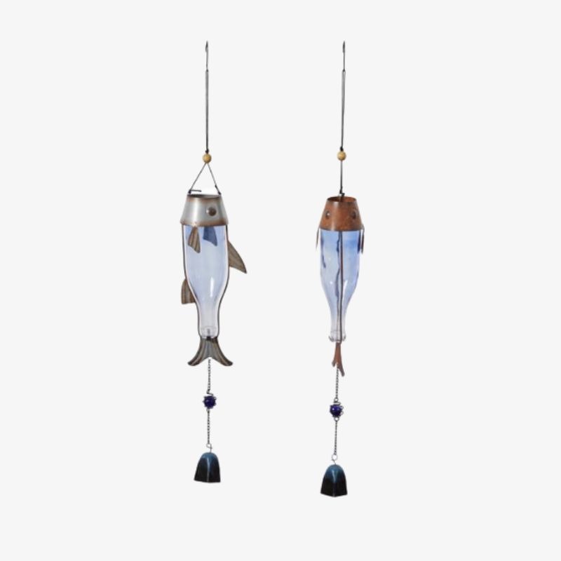 Conjunto de peces colgantes multicolor en acabados azul, cobre, gris plateado y negro