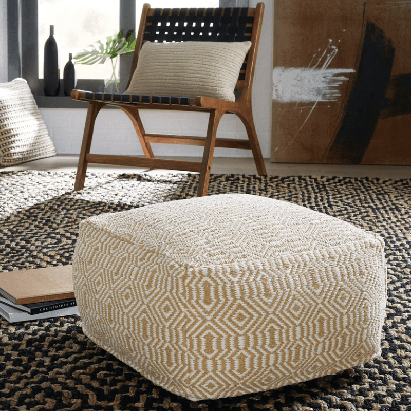 Llene su hogar con un aura de estilo relajado. El atrevido diseño geométrico tejido a mano de este pouf crea intriga visual sin estar demasiado ocupado, agregando un ambiente informal y fresco mientras te relajas con estilo. Los tonos neutros de la funda de algodón se sienten frescos y orgánicos.