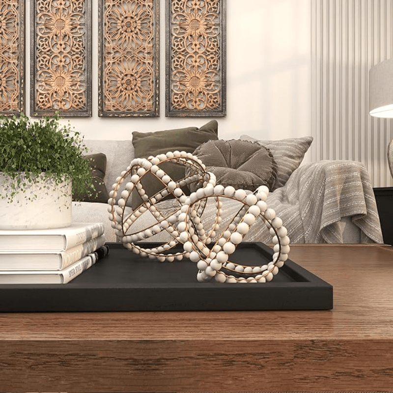 - Fabricado con metal: los orbes decorativos están hechos de material de hierro resistente con abalorio de madera encordadas adjuntas.