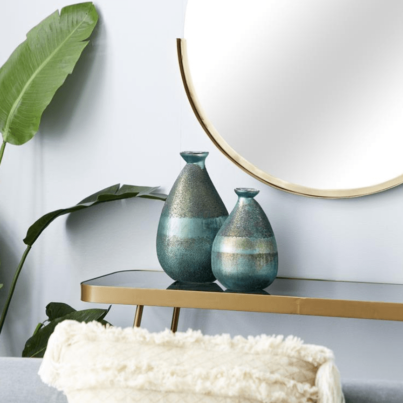 • Estos jarrones de vidrio soplado están moldeados como decoración independiente.