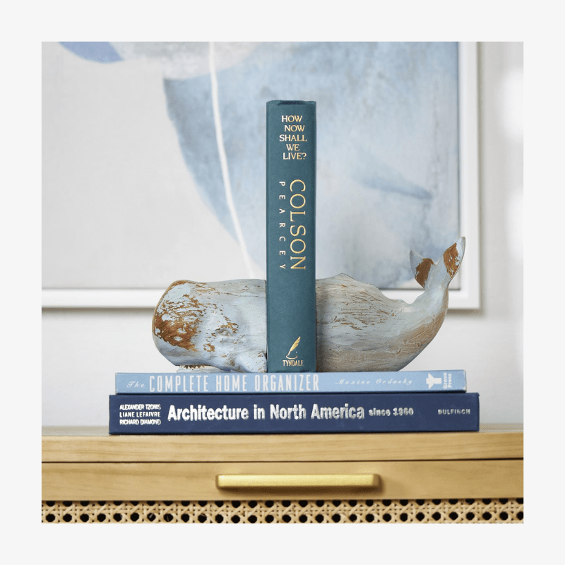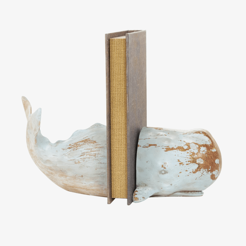 Sujetalibros en forma de ballena se dividen en tienen que mirar como una ballena se mueve a través de sus libros.