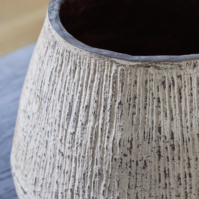 Realce el atractivo artístico de su hogar con este jarrón. Su compuesto de papel desgastado presenta una estética textural que le da mucho carácter. Lleno de flores artificiales/secas o sin adornos, qué adición tan elegante a su hogar creativamente curado.